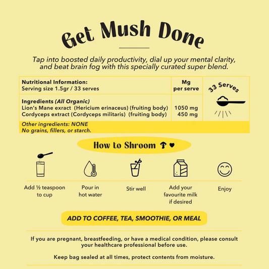 Aside from the fact that it's absolutely delicious, it's completely replaced my morning coffee. My focus and energy has improved tenfold and it sets me up for the day. I really notice the difference when I've missed a morning of Get Mush Done, because put simply, I don't get much done. I recommend this to everyone I know. Thank you for making such a life changing product!